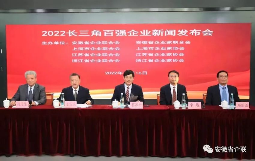 11月16日下午,由安徽省企業(yè)聯(lián)合會(huì)、安徽省企業(yè)家聯(lián)合會(huì)、上海市企業(yè)聯(lián)合會(huì)、上海市企業(yè)家協(xié)會(huì)、江蘇省企業(yè)聯(lián)合會(huì)、江蘇省企業(yè)家協(xié)會(huì)、浙江省企業(yè)聯(lián)合會(huì)和浙江省企業(yè)家協(xié)會(huì)共同主辦的2022長(zhǎng)三角百?gòu)?qiáng)企業(yè)新聞發(fā)布會(huì)在上…